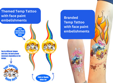 We create custom branded temporary tattoos featuring your logo or name perfect for events, activations, especially family friendly promotions. Let your guests showcase your brand in style while having fun!
